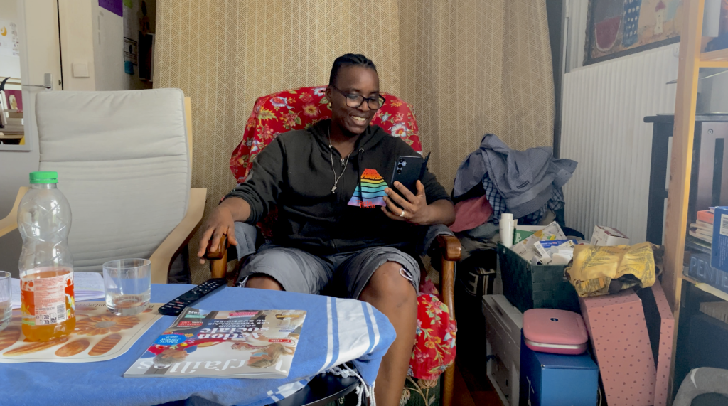 Il est « yossi », une lesbienne-homme de Côte d’Ivoire, et se genre au masculin. Il a obtenu son statut de réfugié en France parce qu’il est LGBT+ et qu’il a été persécuté dans son pays pour cette raison.
